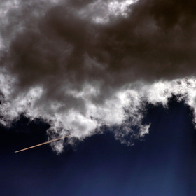 himmel, wolken, flugzeug, konden … ht mit flugzeug kondens